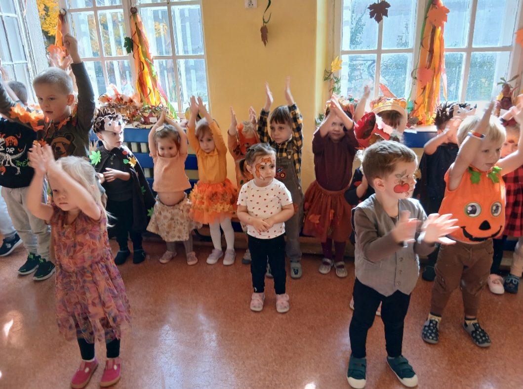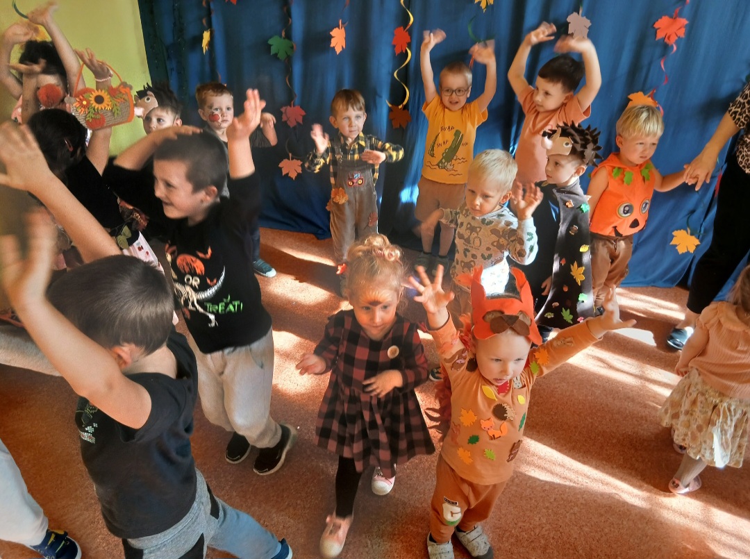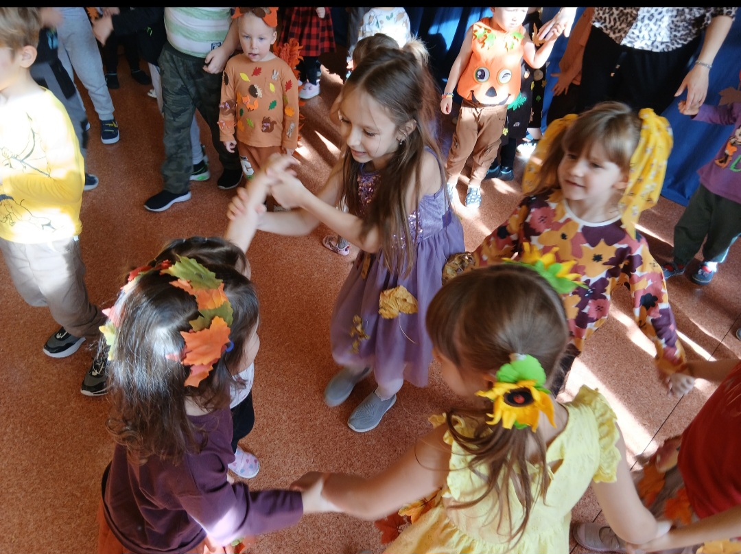W poniedziałkowe popołudnie w naszym Przedszkolu odbył się Bal Jesieni. Biedronki, Myszki i Stokrotki uczestniczyły w wielu zabawach muzyczno-rytmicznych prowadzonych przez rytmika - Pana Pawła. Dzięki wspaniałej zabawie przywitaliśmy więc piękną, polską, złotą jesień!