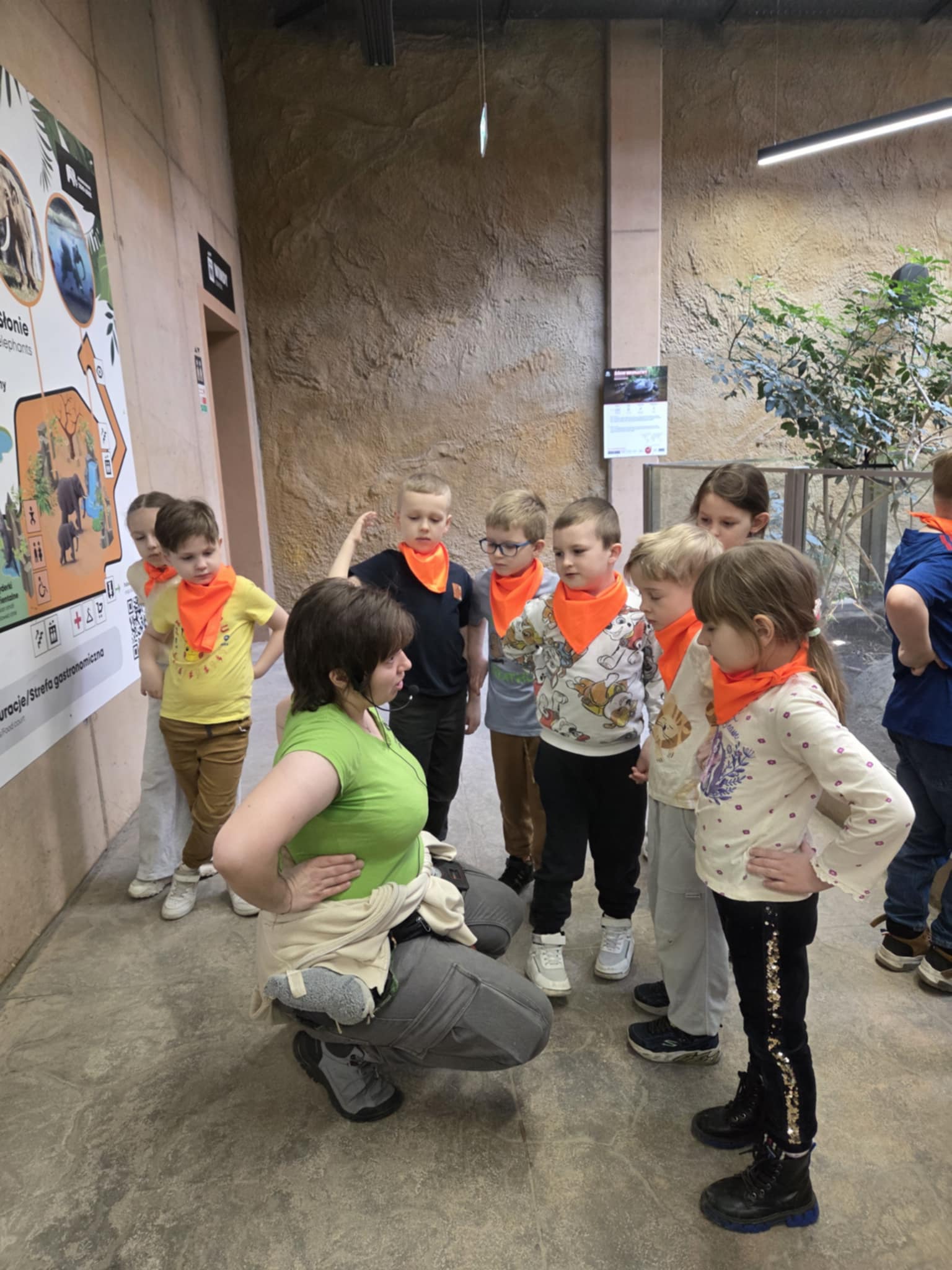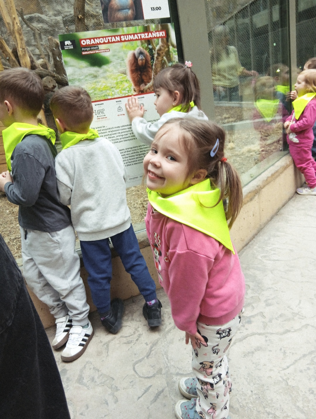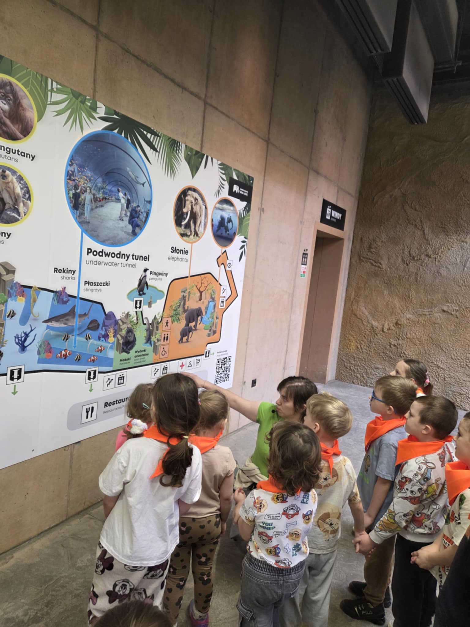 Wczorajczego dnia nasze Przedszkolaki ze wszystkich grup: Biedronki, Myszki i Stokrotki udały się z wizytą do Orientarium ZOO Łódź. Dzieci miały okazję zwiedzić teren z przewodnikiem, dzięki czemu rozwinęły wiedzę dotyczącą różnych gatunków zwierząt występujących na świecie, takich jak: słonie, małpy, tapiry, niedźwiedzie, krokodyle, rekiny. Przedszkolaki poprzez uczestnictwo w wycieczce doskonaliły umiejętności przestrzegania zasad w ruchu drogowym, zasad bezpiecznej podróży busem, przemieszczania się swobodnie i w parach oraz...przeżywania emocji!
