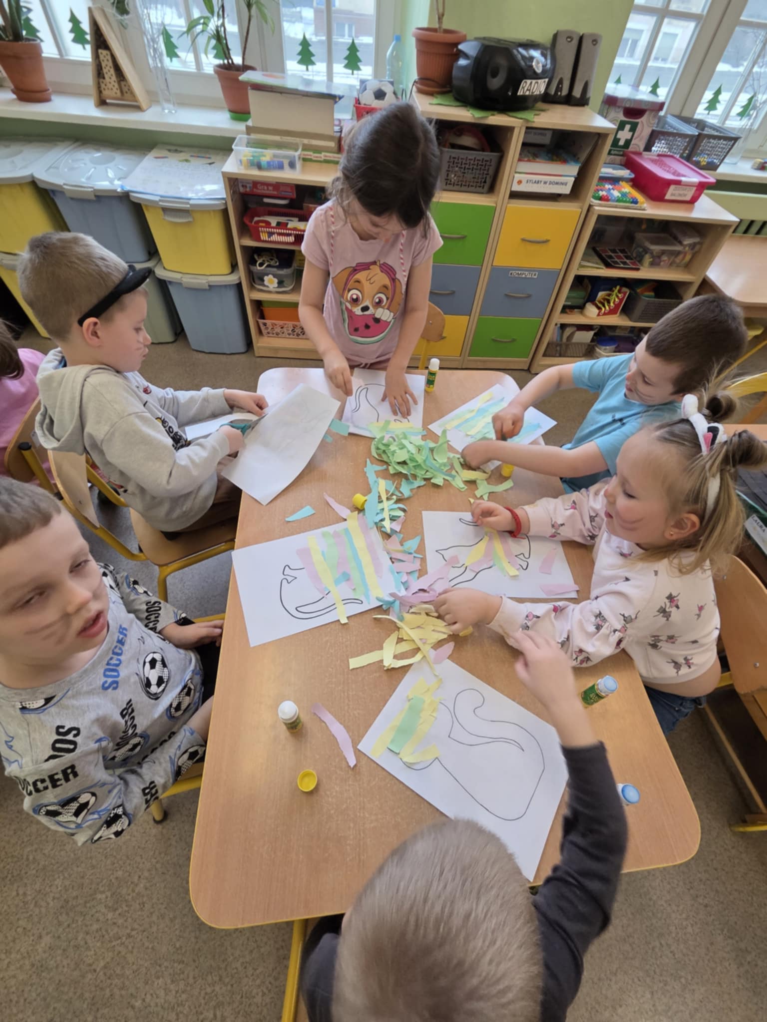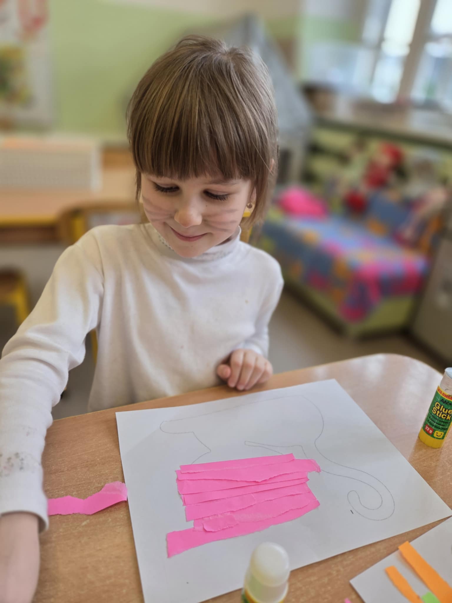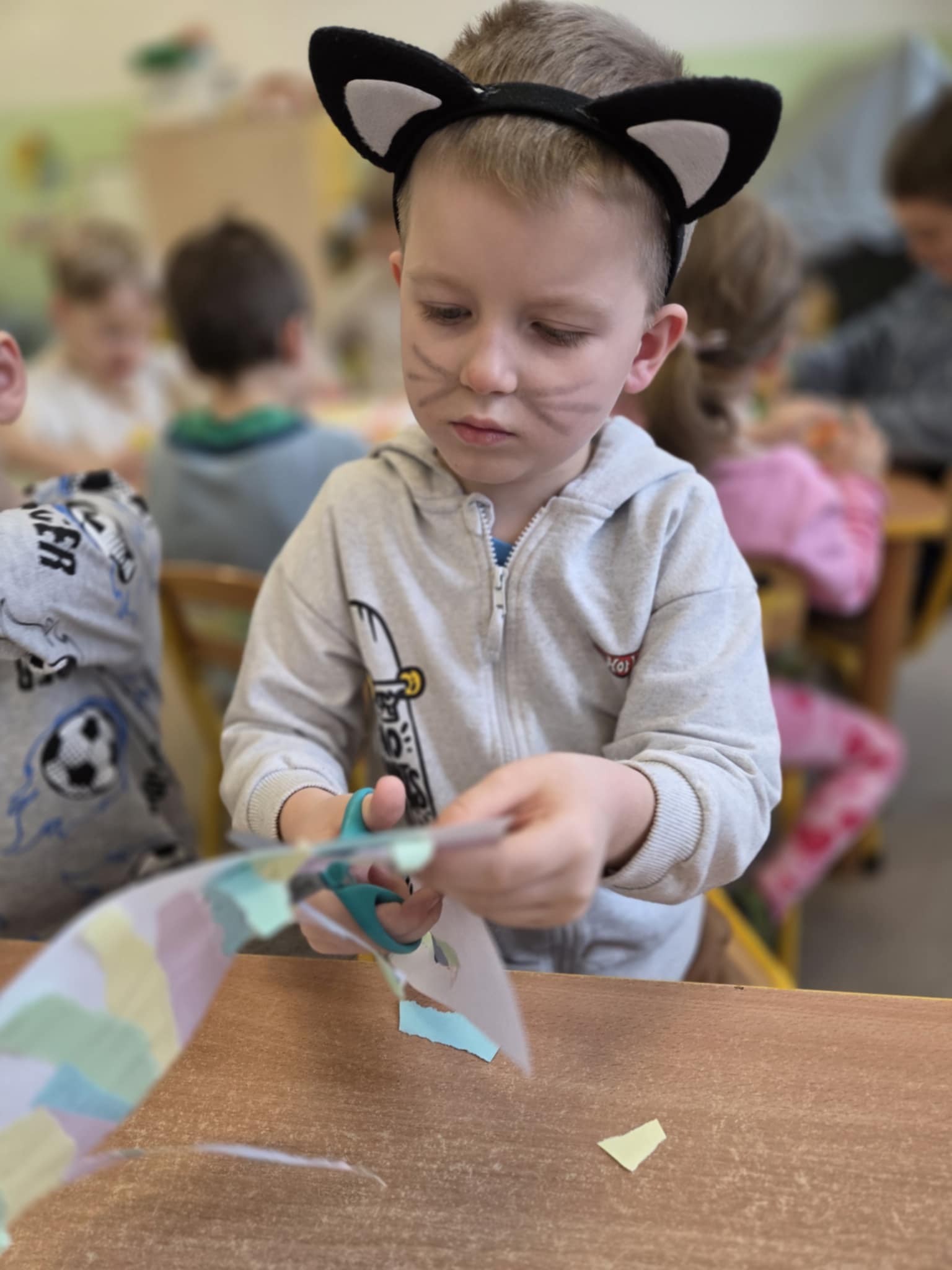 Dzisiejszego popołudnia dzieci z grupy Stokrotki z ogromną radością świętowały Światowy Dzień Kota. Spotkanie rozpoczęliśmy od wesołego powitania – wszyscy przywitali się naśladując kocie zwyczaje. Następnie dzieci obejrzały interesujący film edukacyjny, dzięki któremu poznały wygląd, różne rasy oraz zwyczaje tych niezwykłych zwierząt. Każde chętne dziecko miało okazję zaprezentować swojego pluszowego kotka i opowiedzieć o nim kolegom oraz koleżankom. Nie zabrakło również piosenek i wierszy o kotach, które wprowadziły wszystkich w radosny nastrój. Na zakończenie świętowania dzieci wykonały prace plastyczne inspirowane kocim tematem. Antek i Janek z dużym zaangażowaniem tworzyli koty z klocków LEGO. Kociej zabawie i uśmiechom nie było końca!