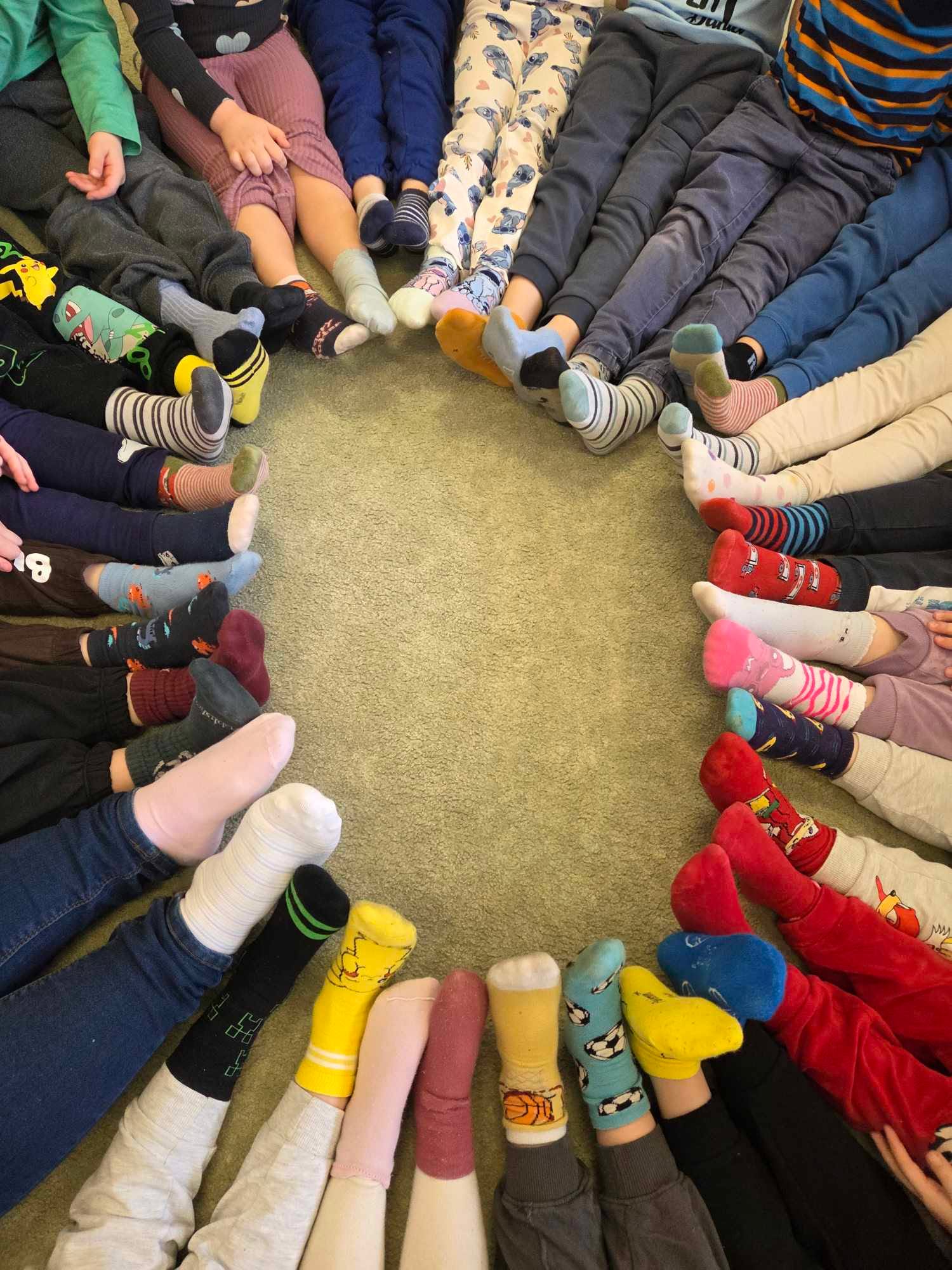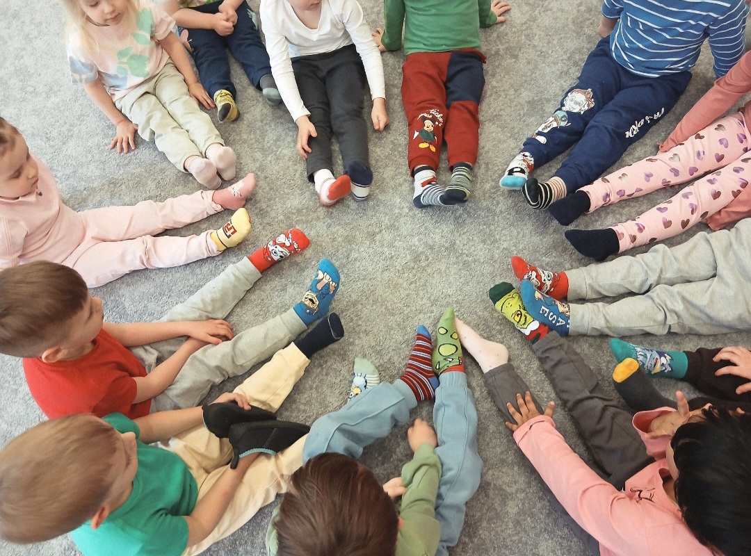 Dzisiejszego dnia nasze Przedszkolaki obchodziły Światowy Dzień Zespołu Downa; Dzień Kolorowej Skarpetki. Dzieci poprzez ubranie kolorowych, niepasujących do siebie skarpetek, które są symbolem niedopasowania społecznego oraz wyrazem tolerancji i otwartości, okazały szacunek, zrozumienie i wsparcie wobec drugiego człowieka, promując przy tym postawę akceptacji różnorodności.