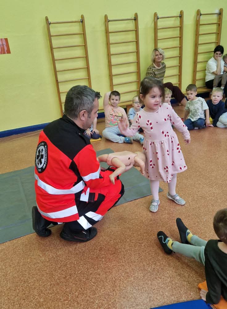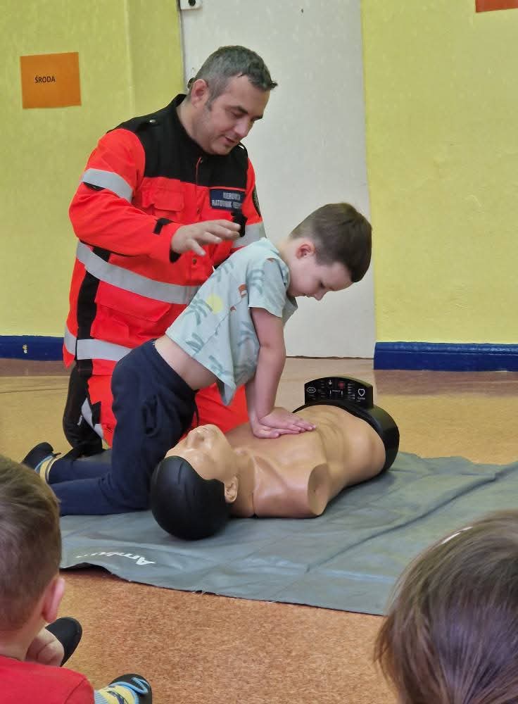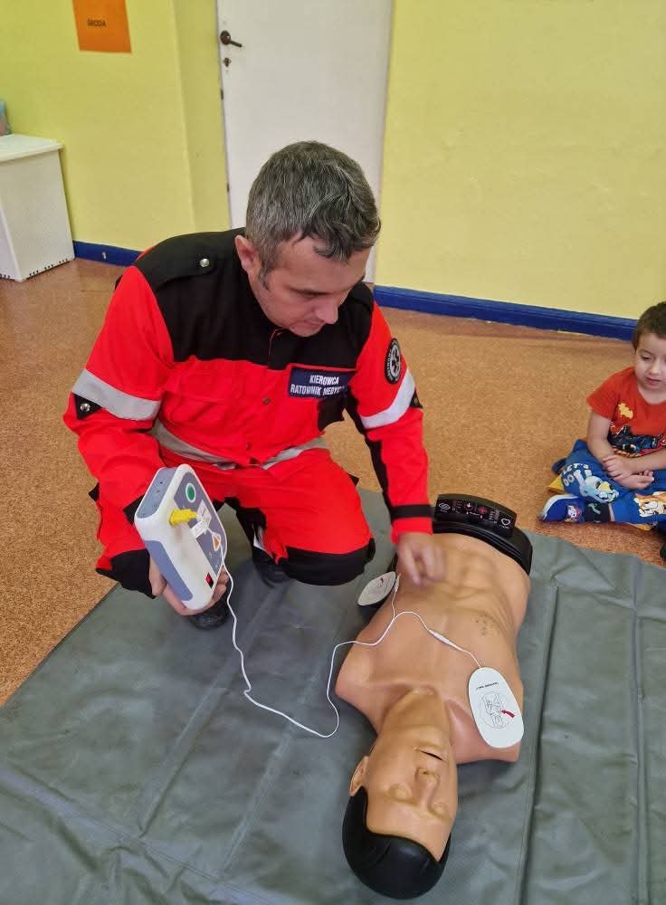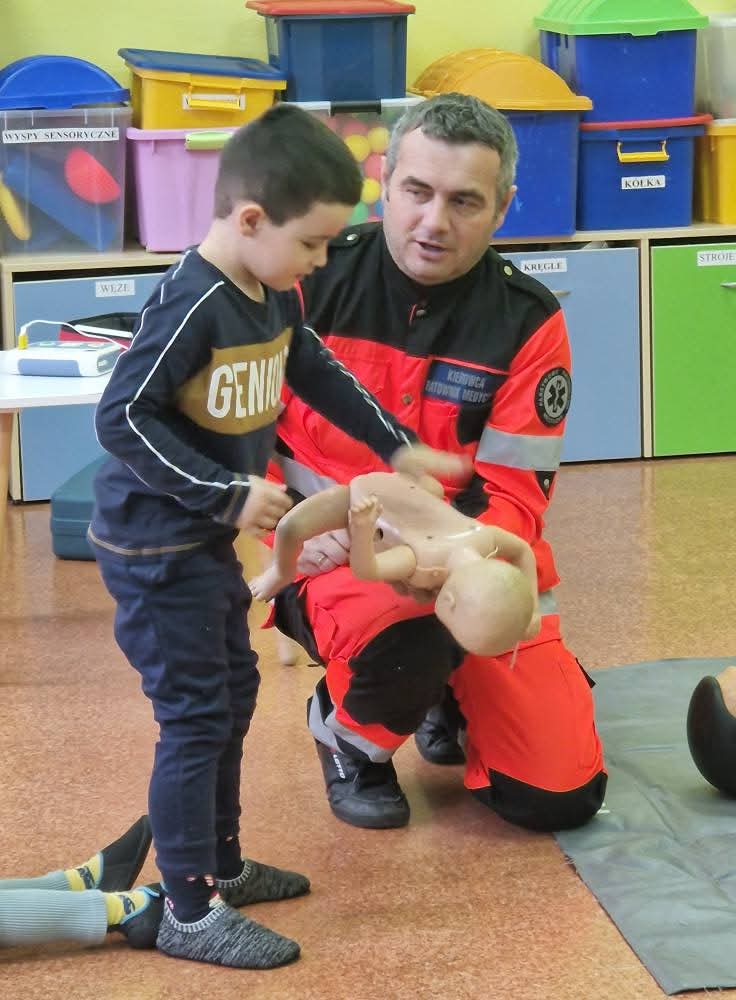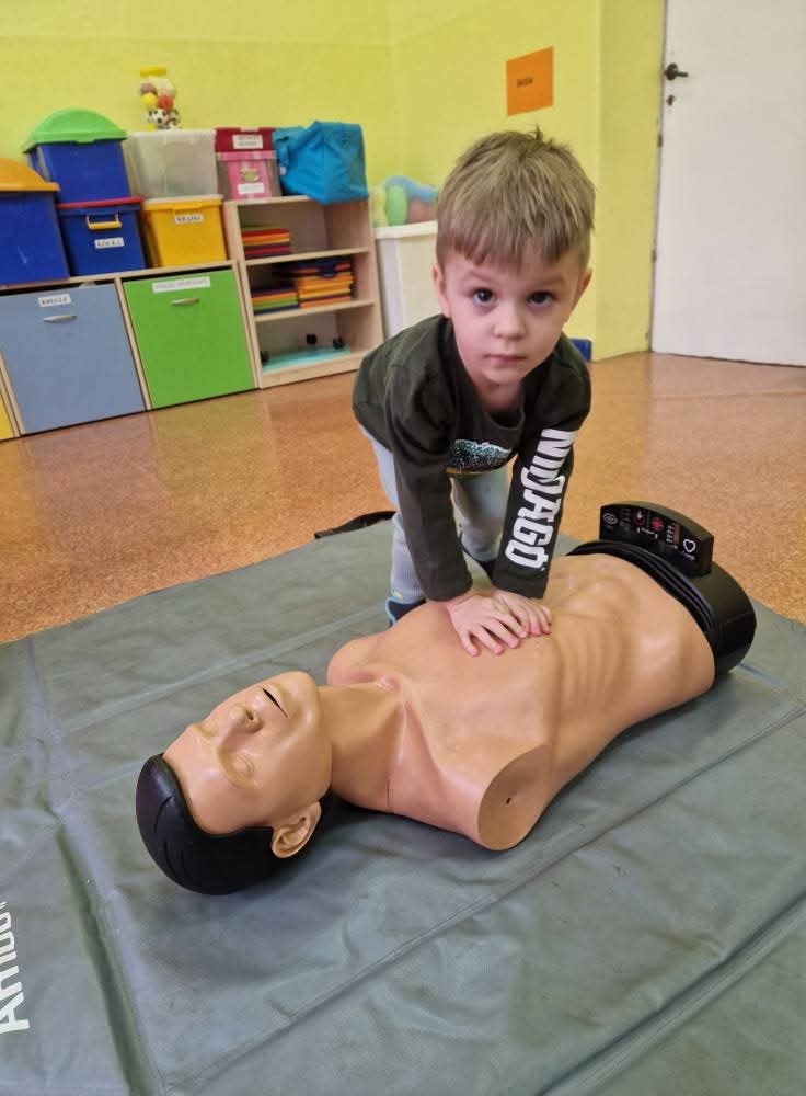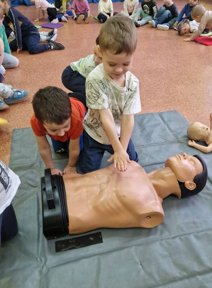 Dzisiejszego dnia nasze grupy przedszkolne: Biedronki, Myszki oraz Stokrotki odwiedził Ratownik medyczny, który opowiedział o zasadach postępowania w przypadku różnych wypadków oraz zaprezentował, jak należy prawidłowo reagować w sytuacjach zagrożenia i udzielać pierwszej pomocy. Jak widać na zdjęciach - dzieci od razu przystąpiły do praktycznych prób...Dziękujemy serdecznie za edukację w przystępny sposób dostosowany do wieku i możliwości naszych Przedszkolaków!
