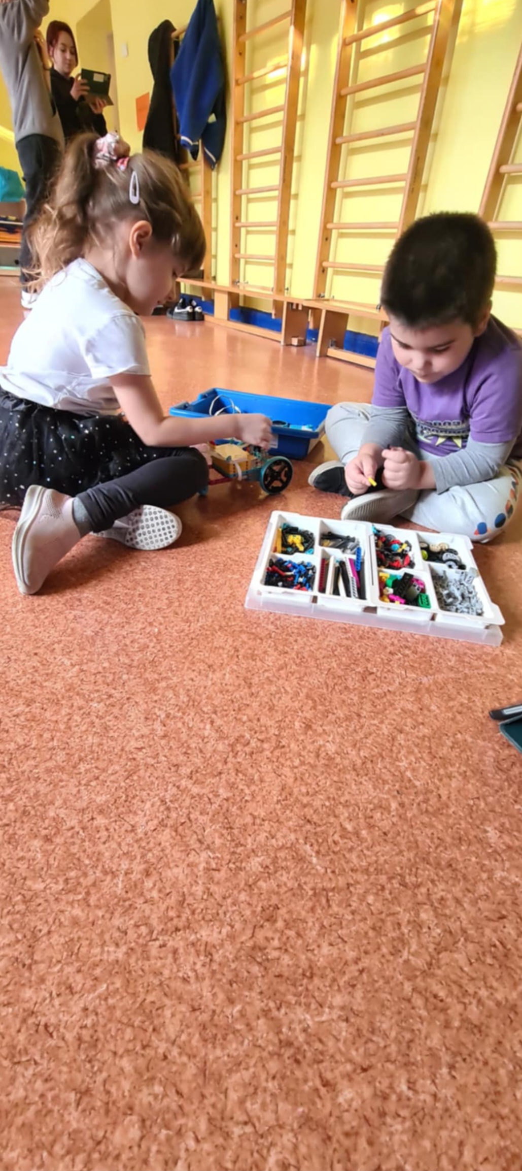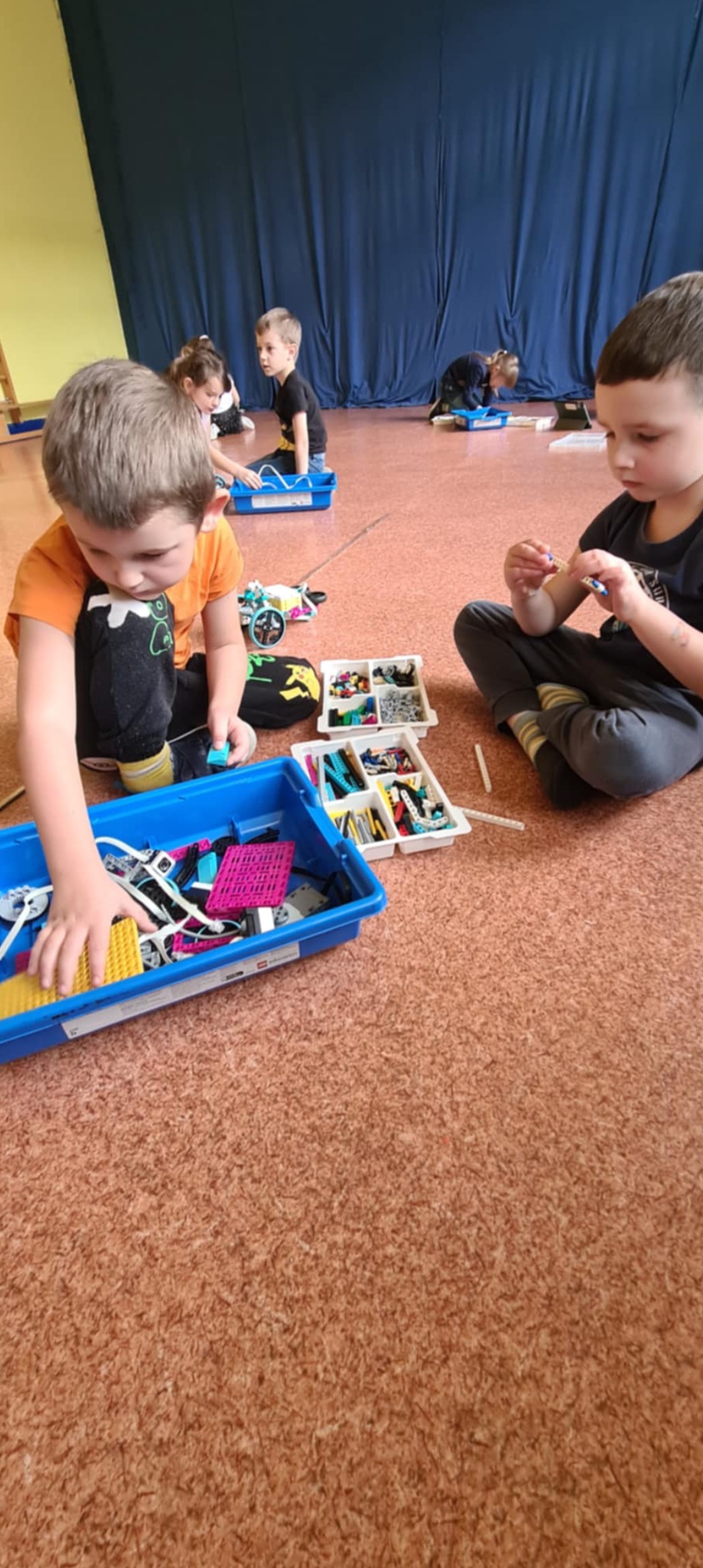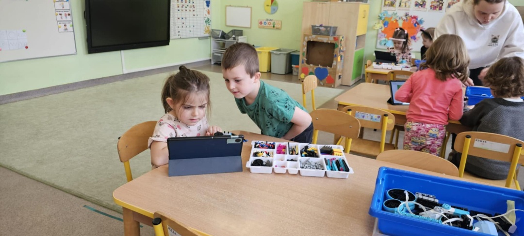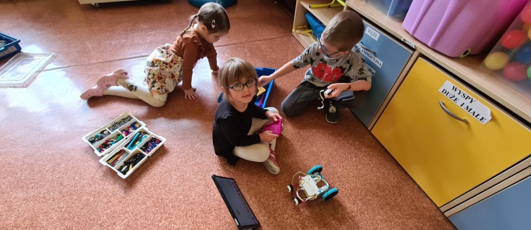 Dzisiaj w grupach starszych odbyły się kolejne zajęcia z robotyki. Dzieci z pełnym zaangażowaniem i skupieniem od razu zabrały się do budowania a następnie programowania prostych robotów z klocków. W ten sposób rozwijały umiejętności logicznego myślenia, kreatywność, zdolności manualne, a także uczyły się współpracy w grupie.