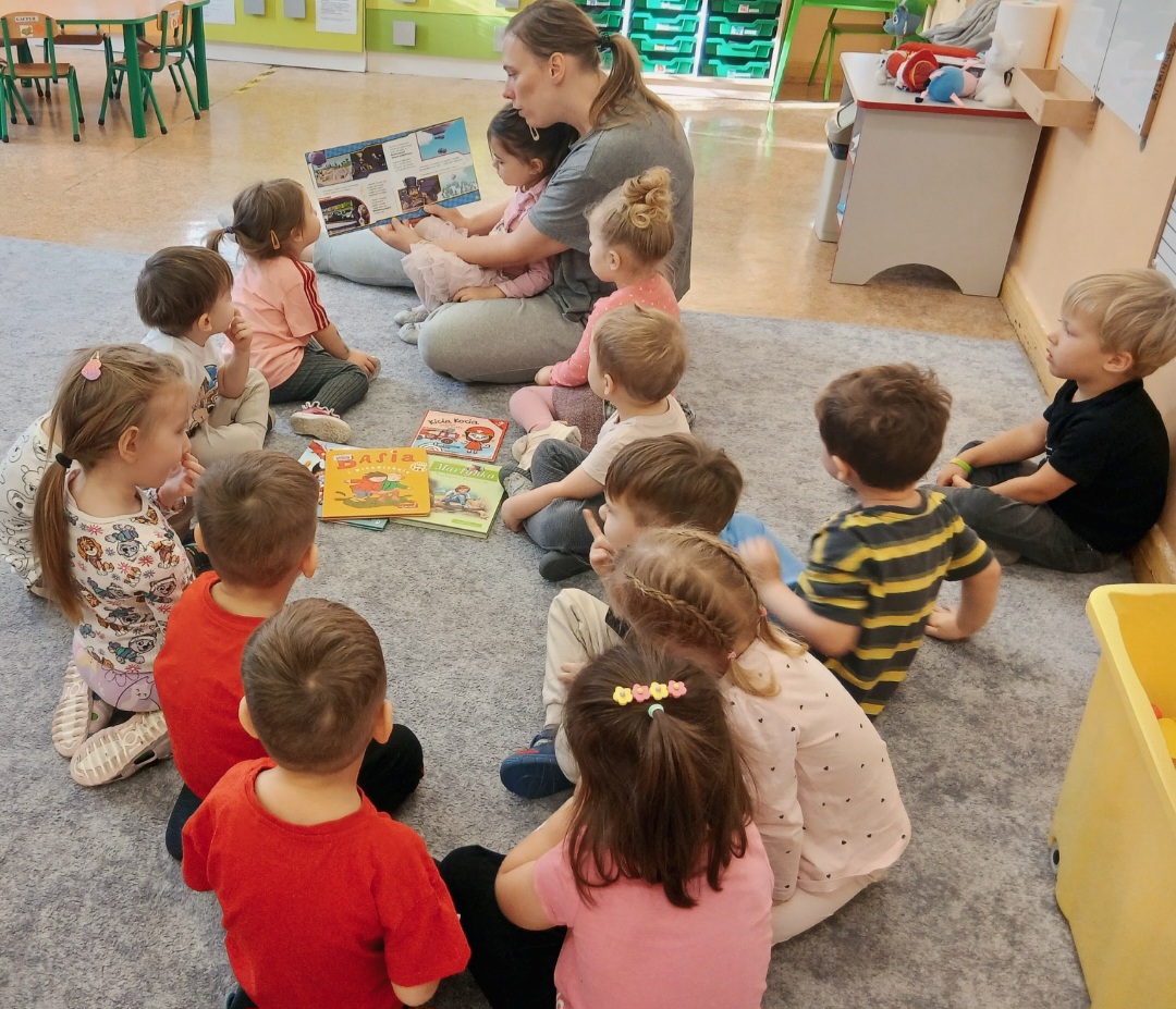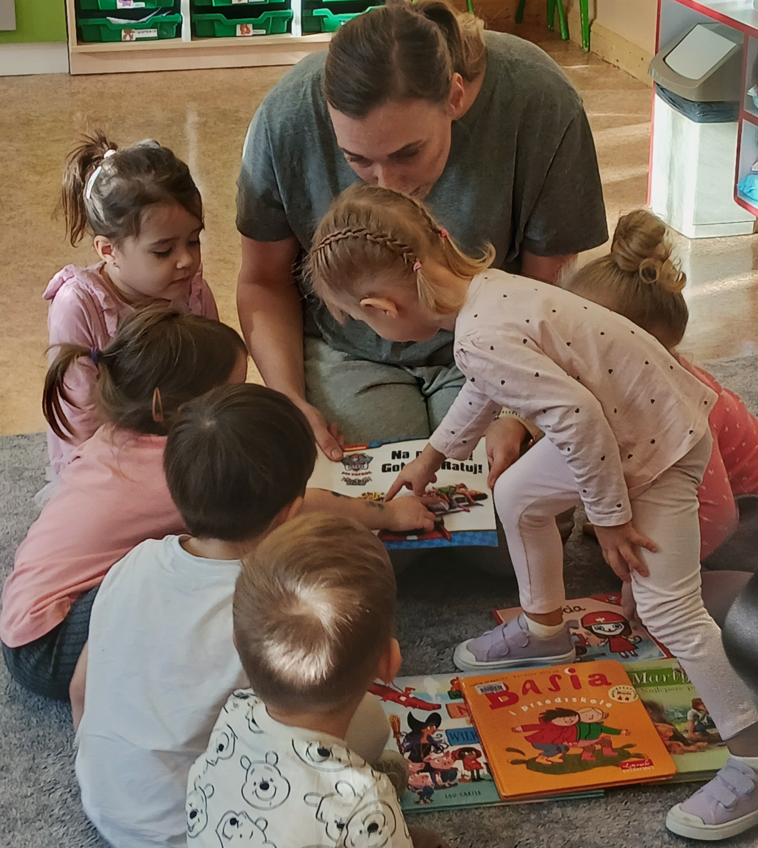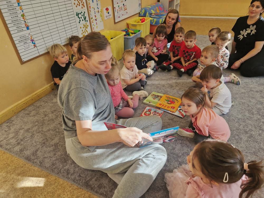 Dzisiejszego dnia nasze Biedroneczki odwiedziła mama Sary - Pani Ania, która w ramach spotkań czytelniczych z Rodzicami zapoznała dzieci z kilkoma pozycjami z zakresu literatury dziecięcej między innymi w ramach rozwijania umiejętności wyrażania i rozumienia emocji swoich i innych osób.