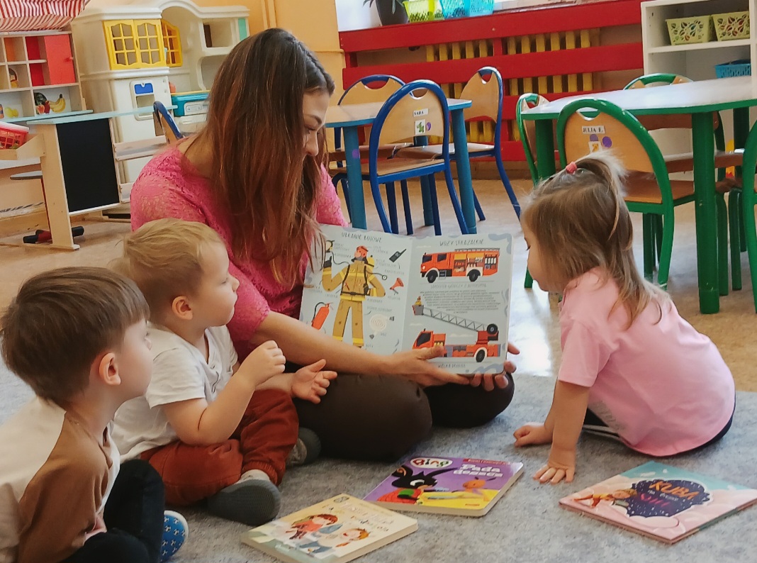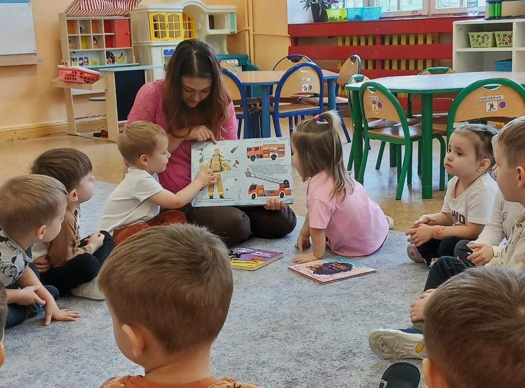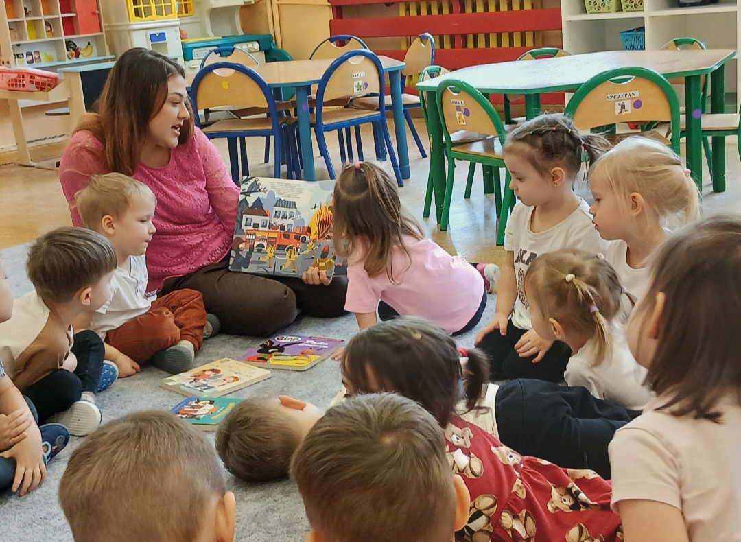 Na dzisiejsze spotkanie czytelnicze z Rodzicem nasze Biedroneczki zaprosiły Panią Nikolę - mamę Joela, która poprzez piękną opowieść na podstawie fragmentów tekstów literackich zapoznała dzieci z zawodem strażaka.