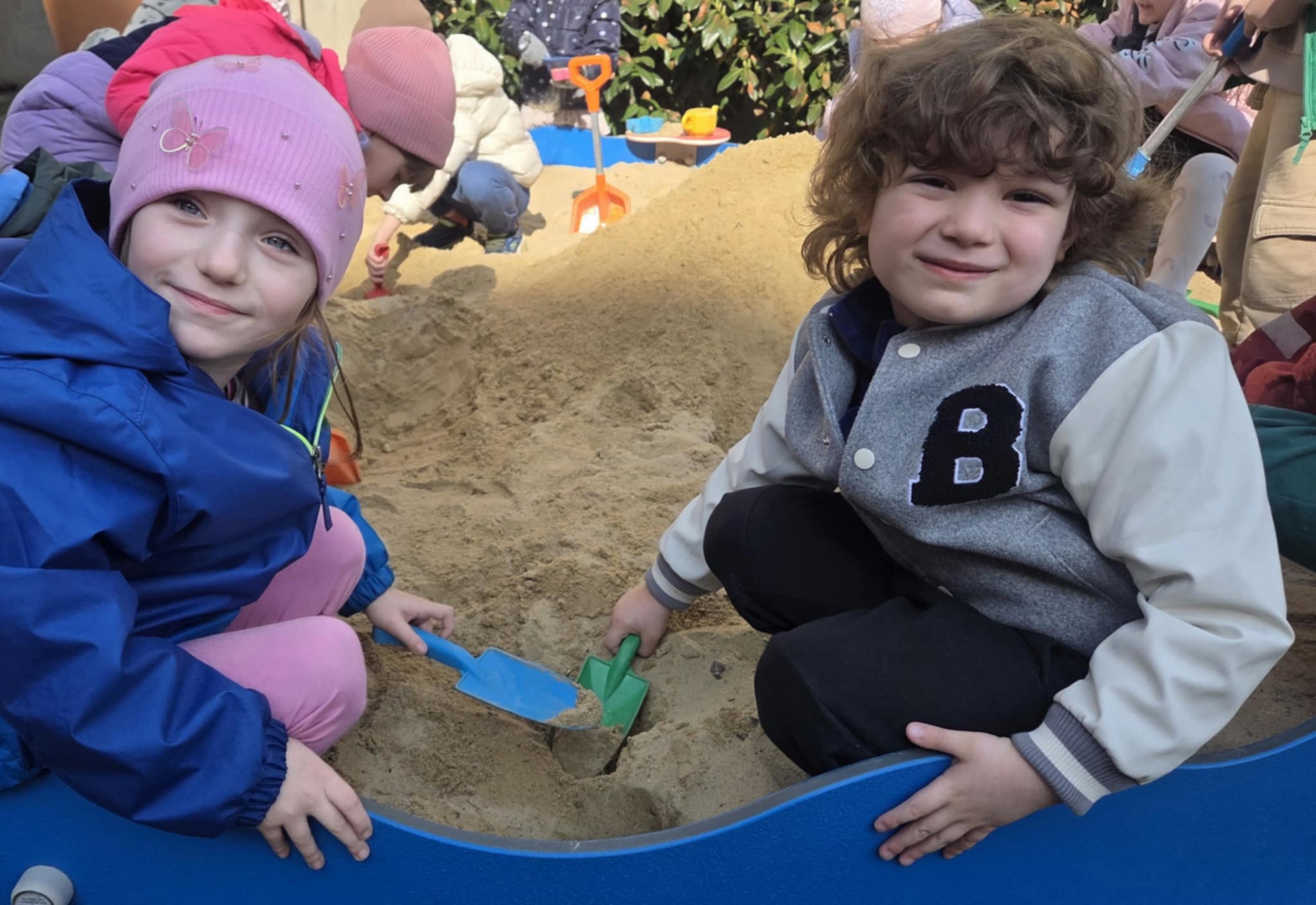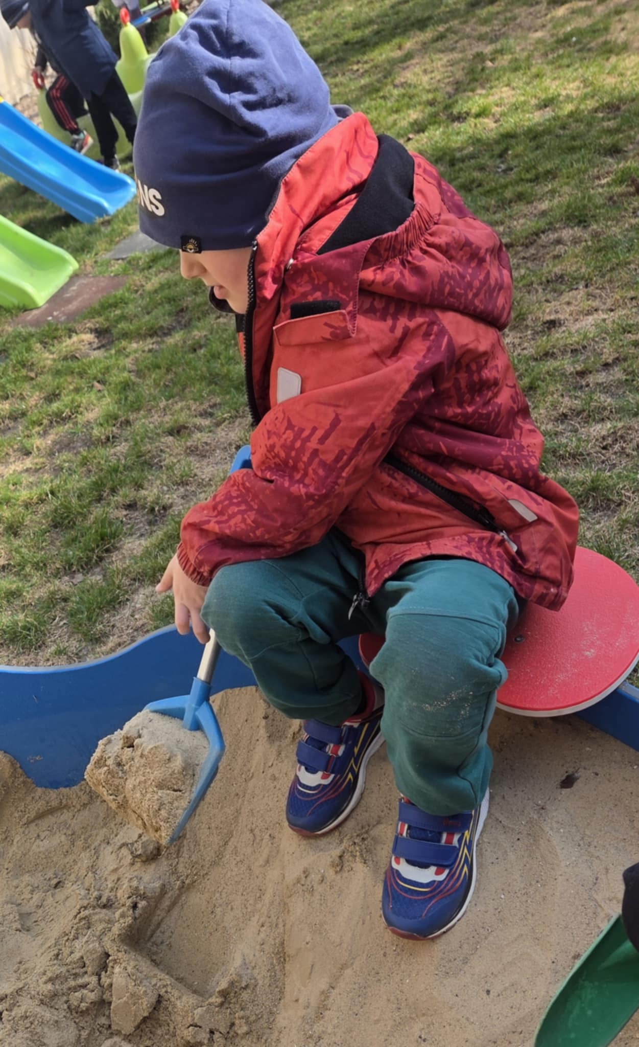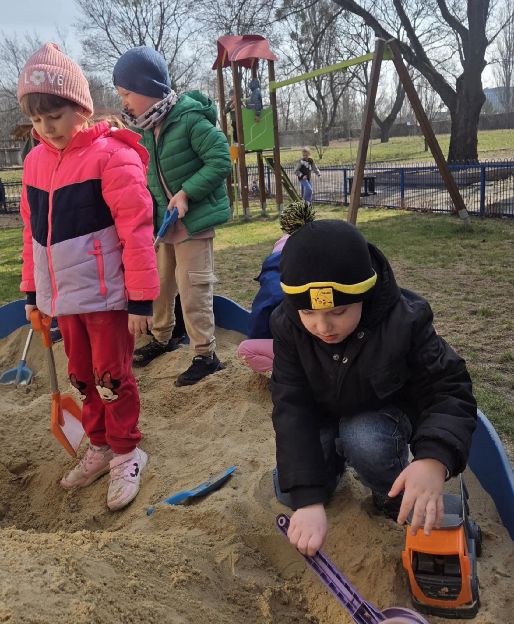 Korzystając z pięknej, wiosennej pogody, dzieci z grupy Stokrotek z radością spędziły czas na przedszkolnym placu zabaw. Słoneczna aura sprzyjała aktywności na świeżym powietrzu oraz wspólnej zabawie. Przedszkolaki chętnie korzystały z dostępnych atrakcji – bawiły się w piaskownicy, gdzie powstawały „lodowe” przysmaki i pyszne „ciasteczka”. Dużym zainteresowaniem cieszyły się również huśtawki i bujaki, które dostarczyły dzieciom wiele radości i śmiechu. Nie zabrakło także ruchu i sportowych emocji podczas gry w piłkę nożną. Takie chwile to nie tylko świetna zabawa, ale także doskonała okazja do rozwijania wyobraźni, współpracy oraz sprawności ruchowej dzieci.