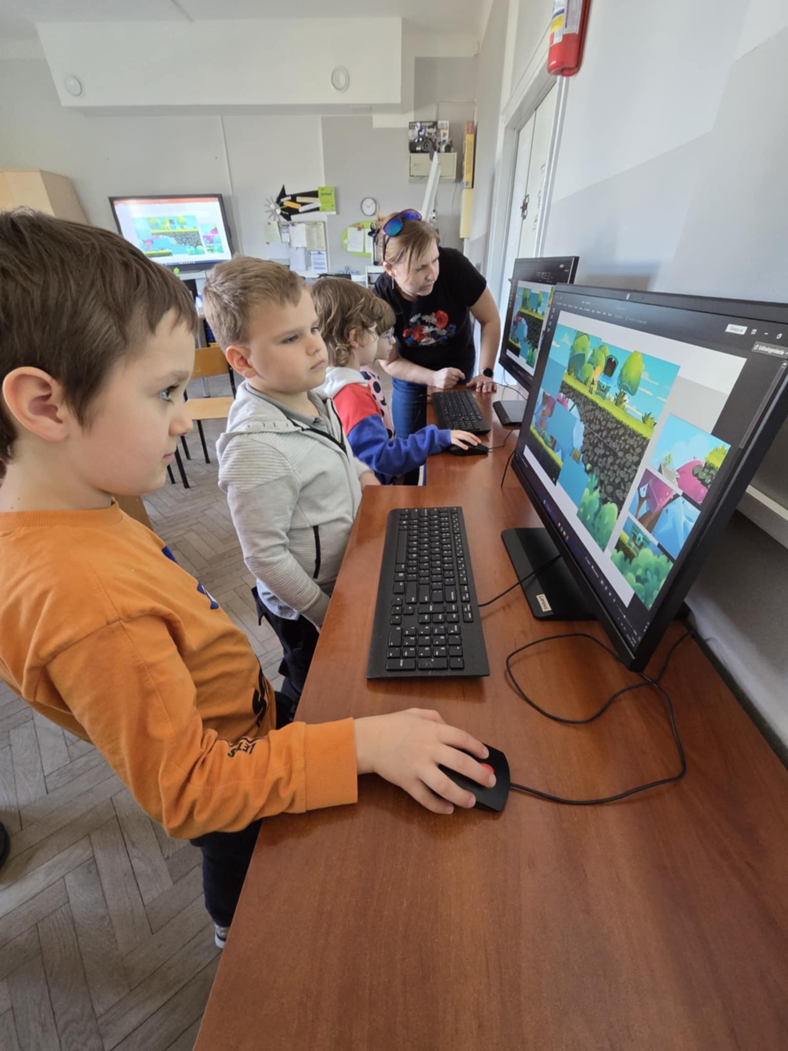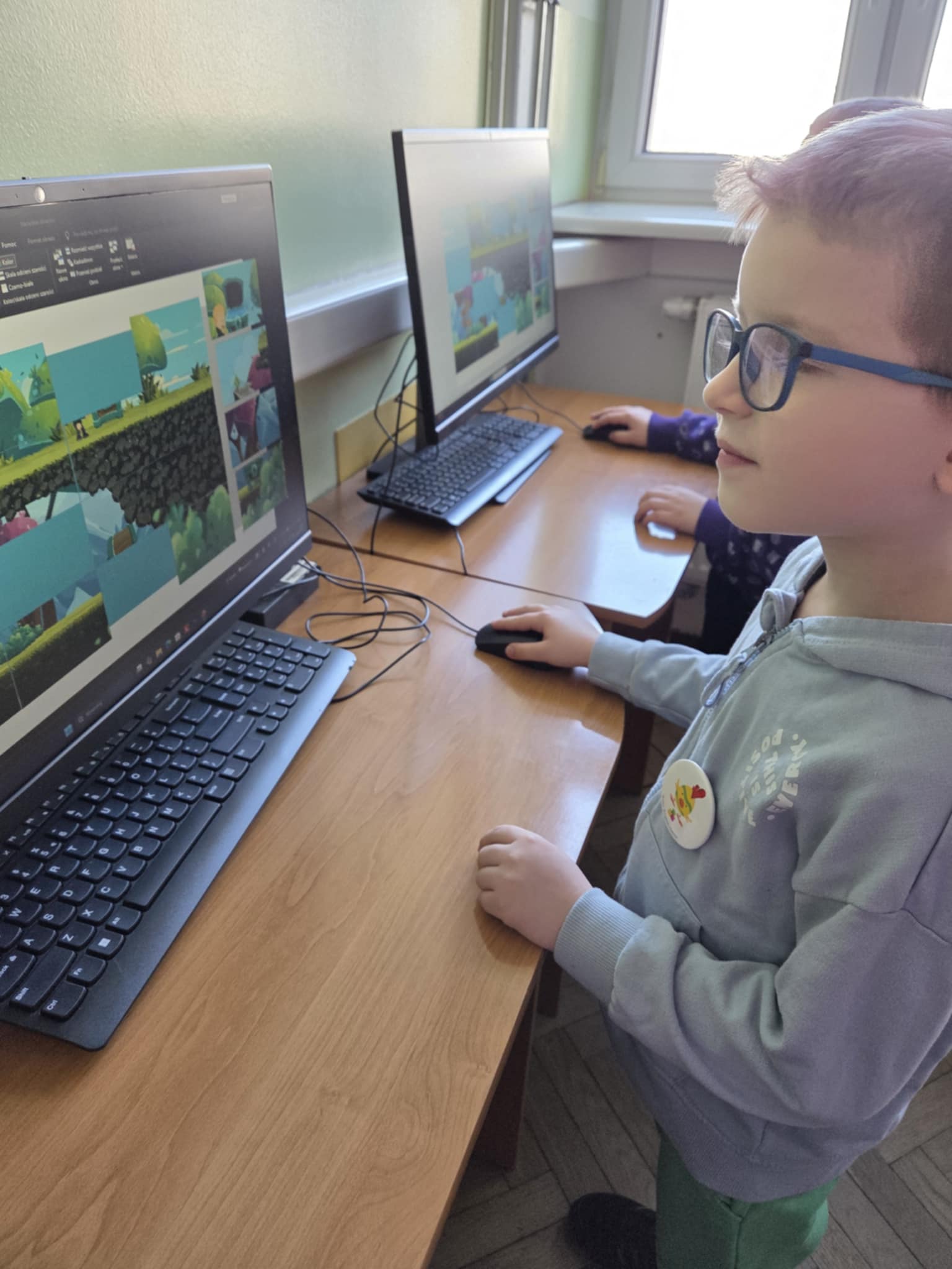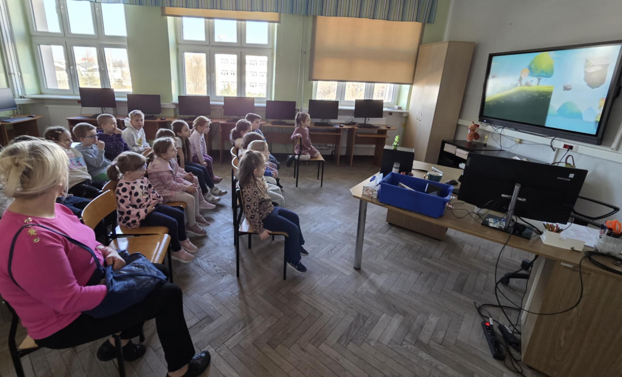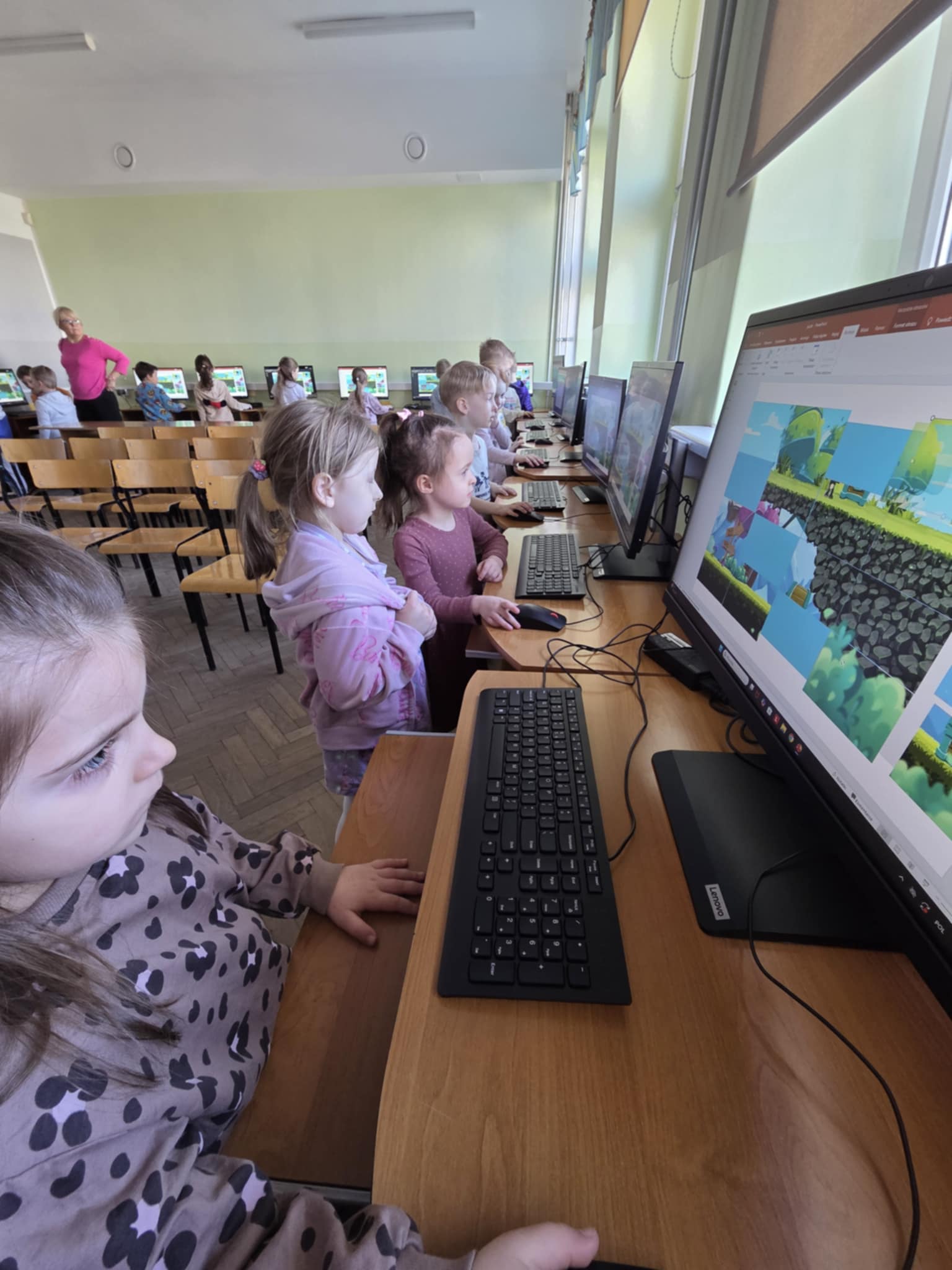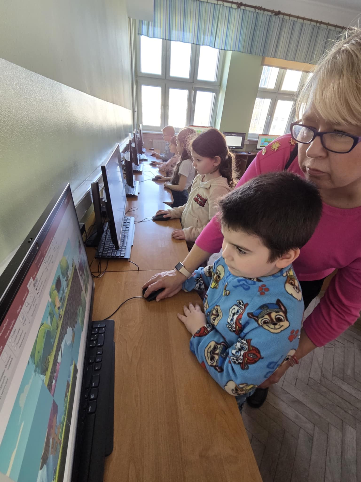 W dniu dzisiejszym Stokrotki udały się z wizytą do Szkoły Podstawowej nr 4 w Łodzi w celu rozwijania wiedzy z zakresu nowych technologii. Dzieci miały okazję doświadczyć możliwości, jakie niesie za sobą komputer oraz edukacyjne, praktyczne i rozsądne korzystanie z niego. Stokrotki brały udział w grach i zabawach takich jak: układanki, puzzle, rysunki. Przedszkolaki osiągnęły rownież cel, jakim jest kształtowanie pozytywnego stosunku do instytucji jaką jest szkoła - wróciły zadowolone i gotowe na realizację zbliżających się nowych wyzwań!