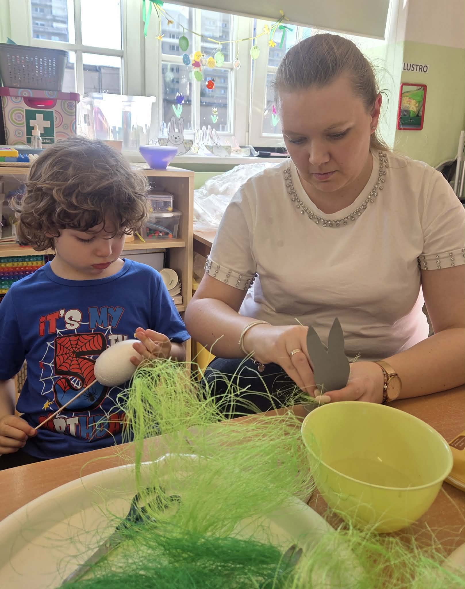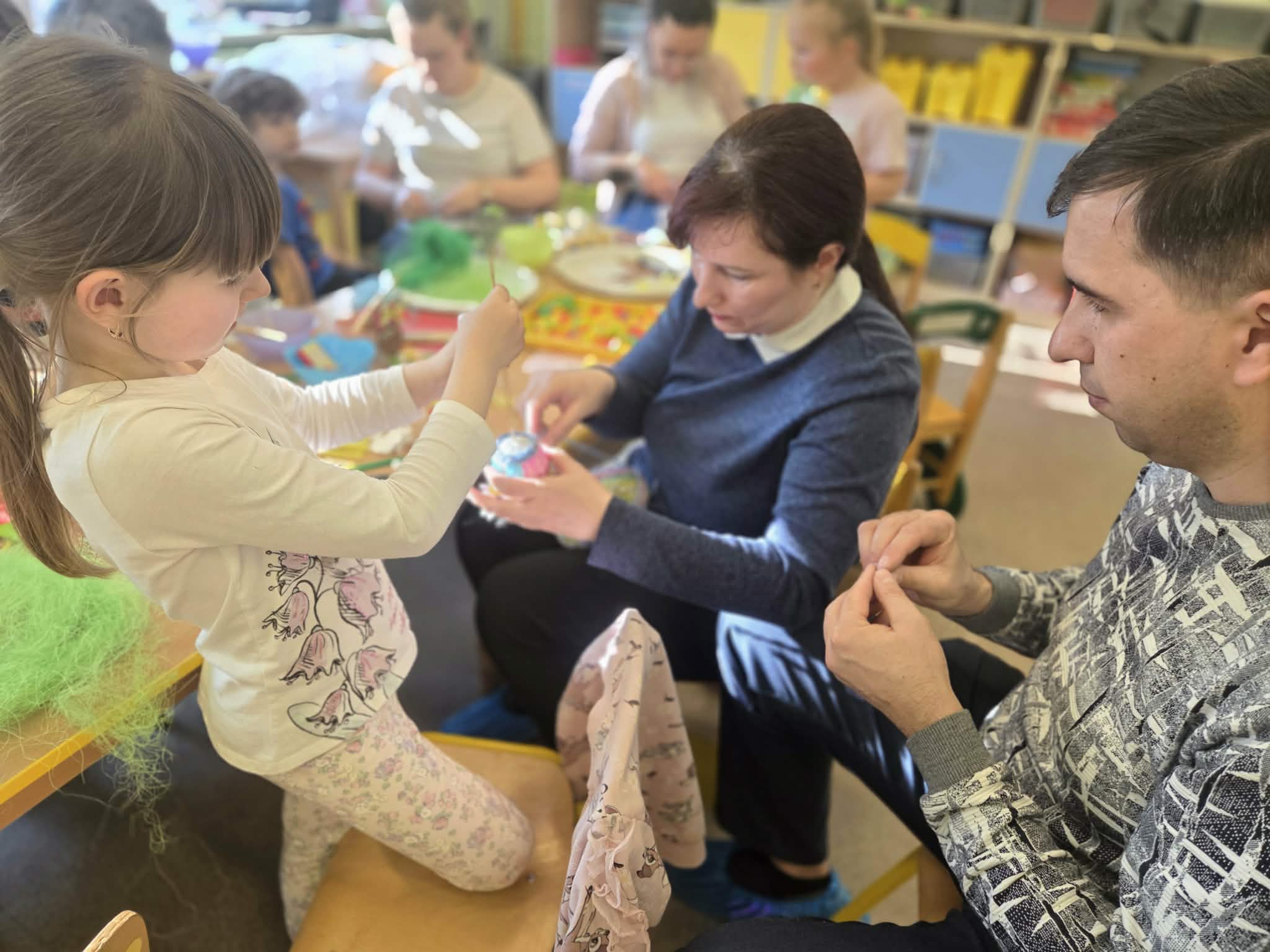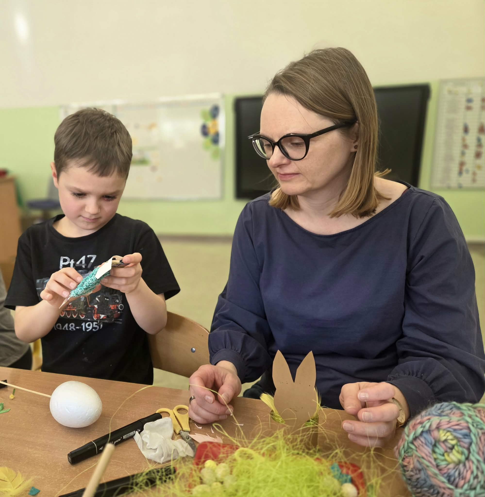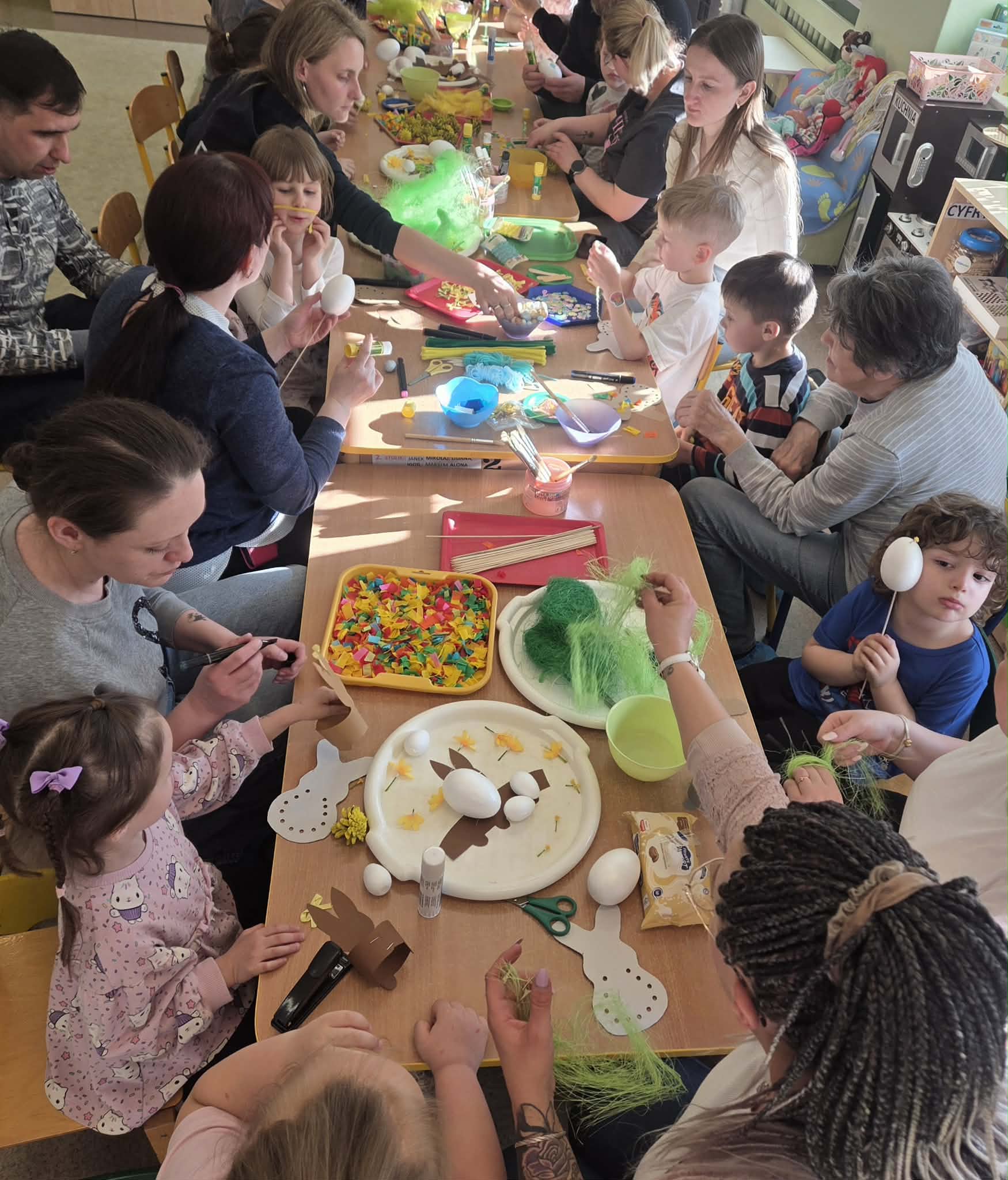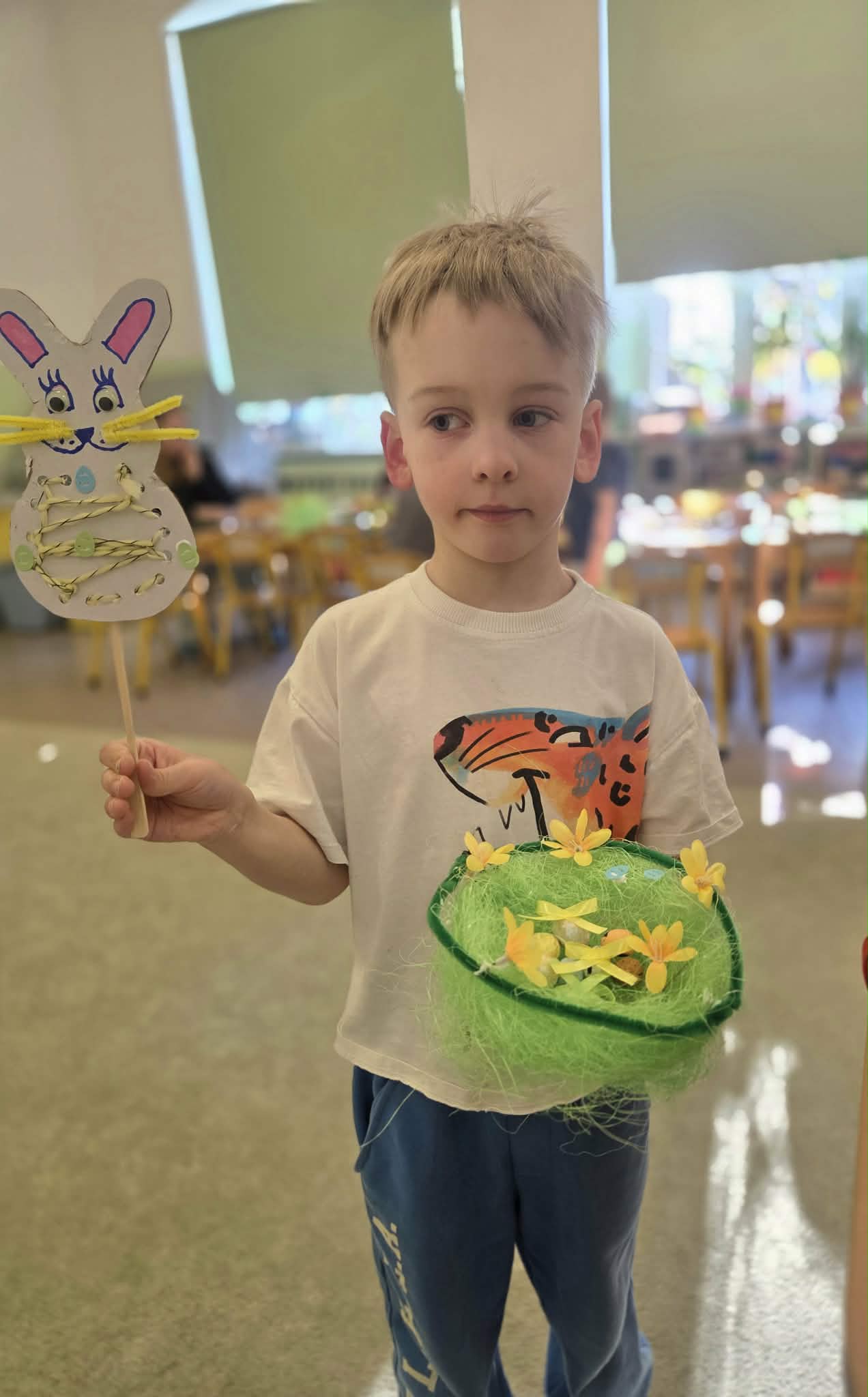 W grupie Stokrotek zapanowała prawdziwie świąteczna, rodzinna atmosfera. Podczas warsztatów wielkanocnych dzieci wspólnie z rodzicami spędziły wyjątkowe chwile pełne radości, uśmiechu i bliskości. Spotkanie rozpoczęło się od wesołych zabaw i zagadek w kole, które wprowadziły wszystkich w magiczny, wielkanocny nastrój. Następnie mali artyści wraz z rodzicami z ogromnym zaangażowaniem tworzyli świąteczne ozdoby – powstały urocze stroiki z kurczaczkiem, zajączki w sweterkach oraz kolorowe jajka. Był to piękny czas wspólnego tworzenia, rozmów i budowania relacji, który pokazał, jak ważne są takie chwile spędzone razem.