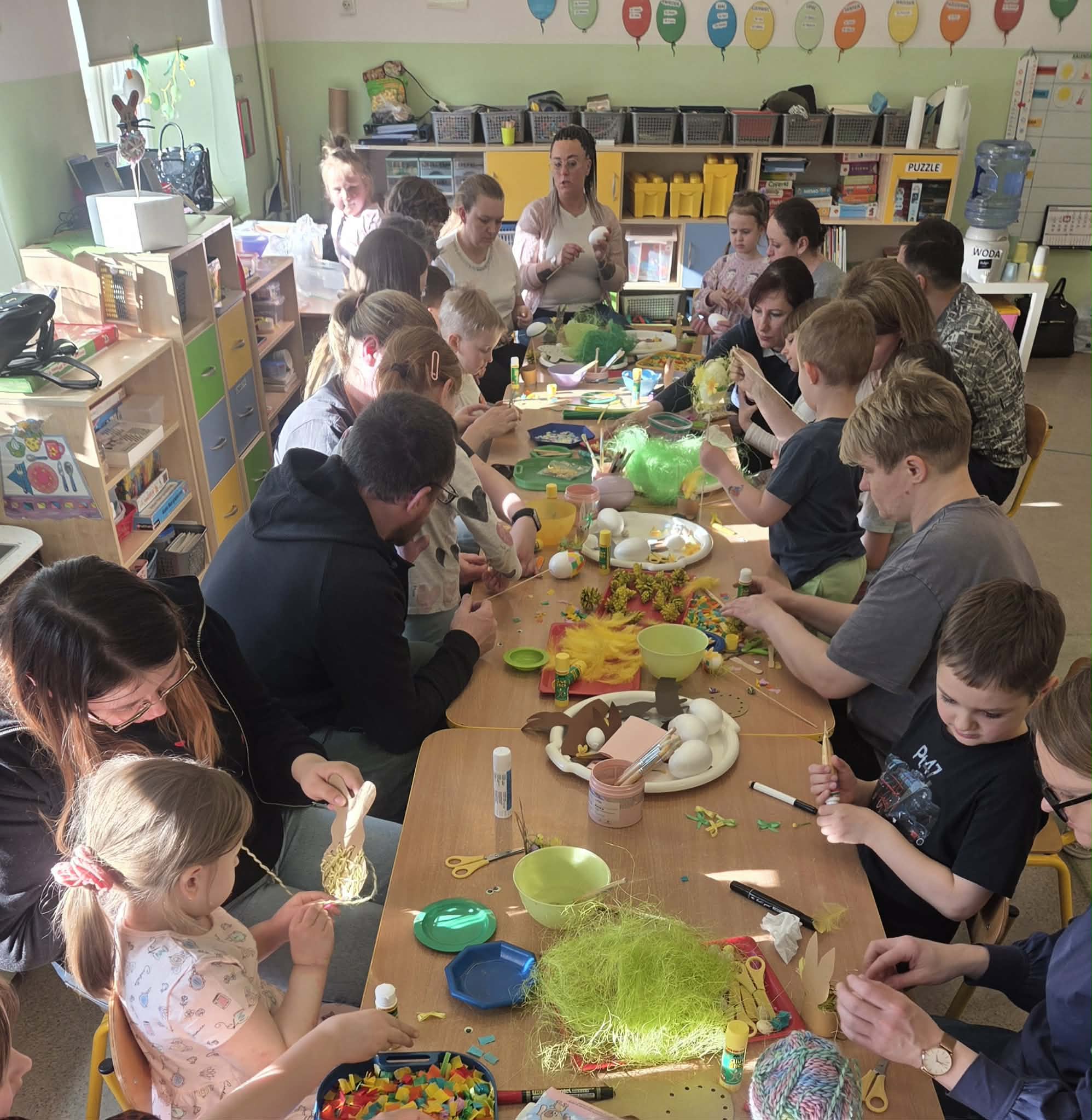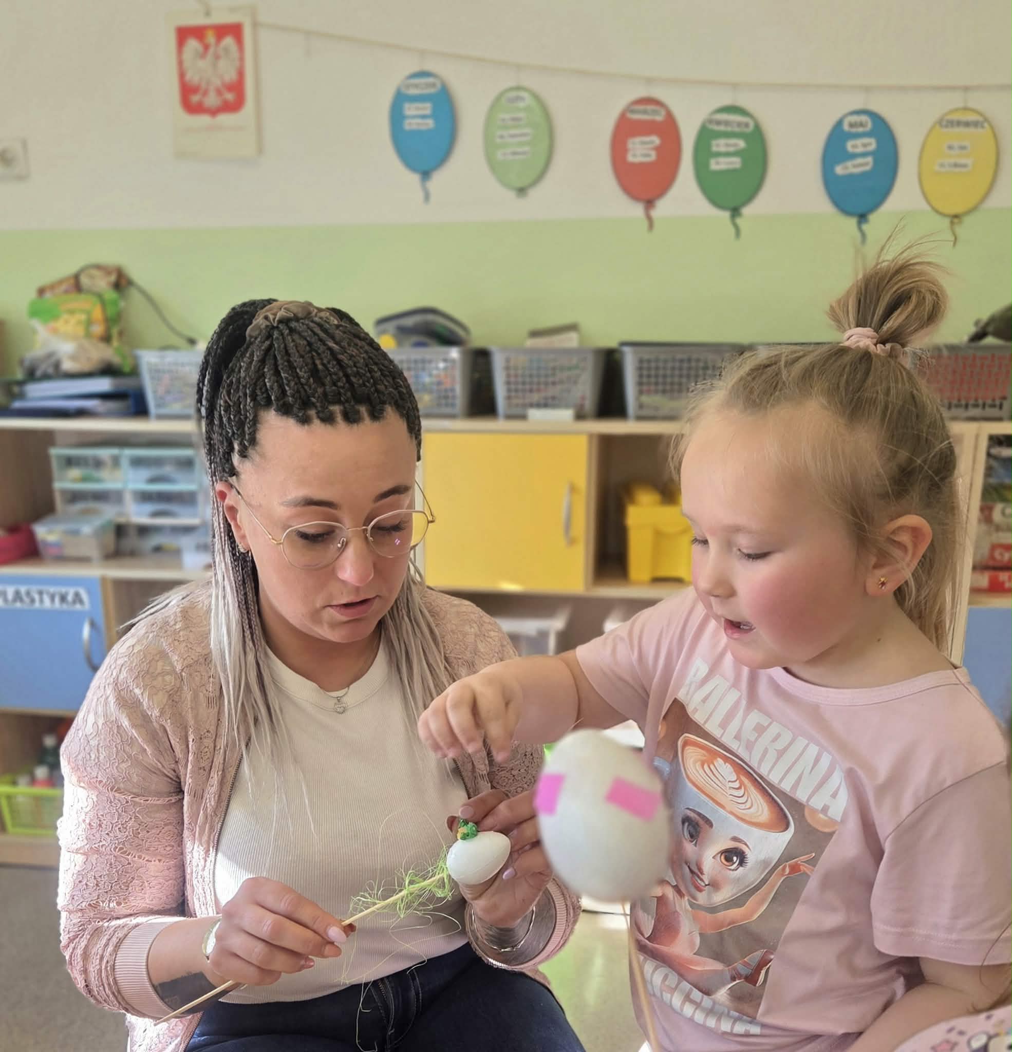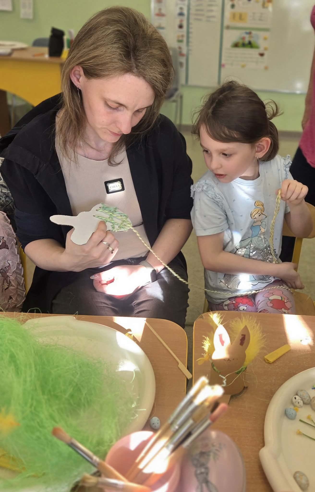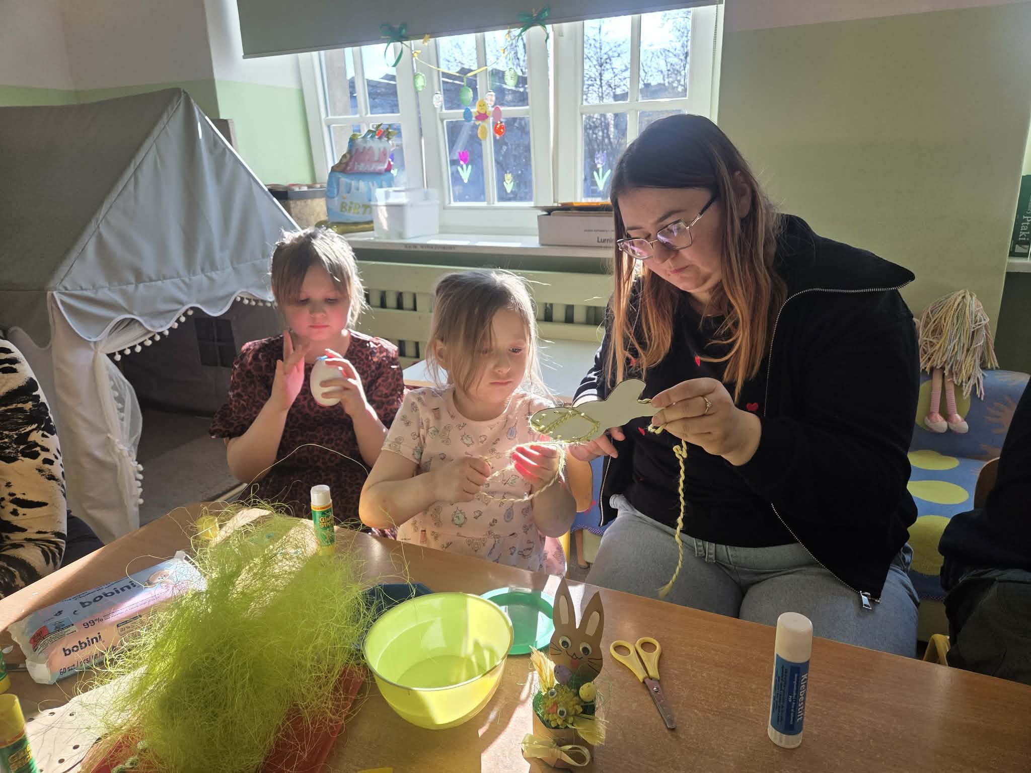 W grupie Stokrotek zapanowała prawdziwie świąteczna, rodzinna atmosfera. Podczas warsztatów wielkanocnych dzieci wspólnie z rodzicami spędziły wyjątkowe chwile pełne radości, uśmiechu i bliskości. Spotkanie rozpoczęło się od wesołych zabaw i zagadek w kole, które wprowadziły wszystkich w magiczny, wielkanocny nastrój. Następnie mali artyści wraz z rodzicami z ogromnym zaangażowaniem tworzyli świąteczne ozdoby – powstały urocze stroiki z kurczaczkiem, zajączki w sweterkach oraz kolorowe jajka. Był to piękny czas wspólnego tworzenia, rozmów i budowania relacji, który pokazał, jak ważne są takie chwile spędzone razem.