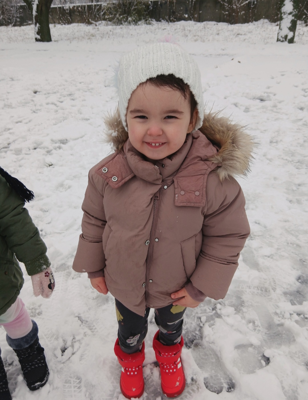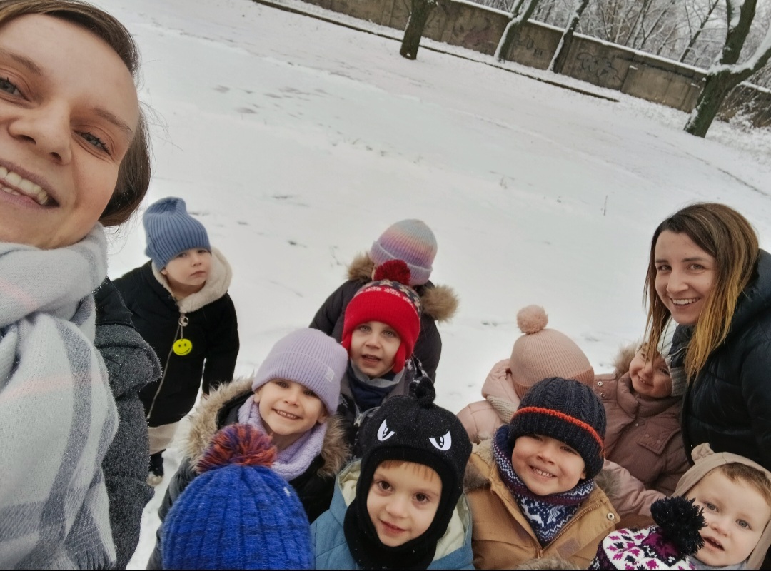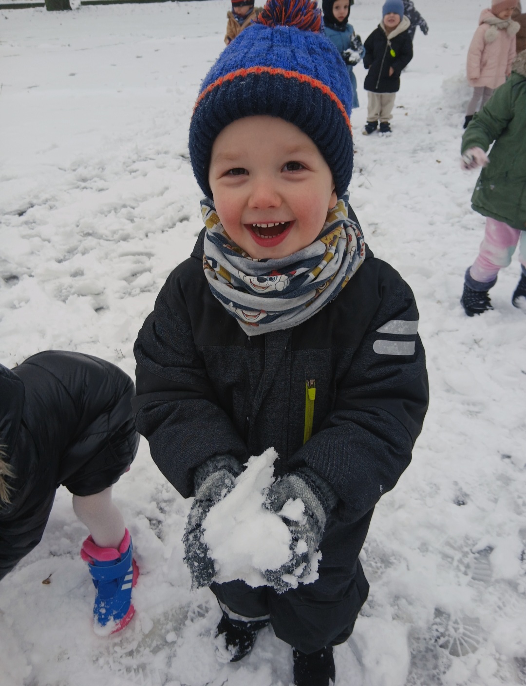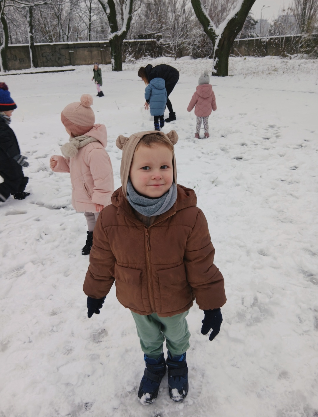 Biedroneczki z samego rana postanowiły, że dziś skorzystają z przepięknych, zimowych okoliczności przyrody. Tak też zrobiły i udały się na pobliskie boisko szkolne, gdzie uczestniczyły w zabawach ruchowych oraz ulepiły swojego pierwszego bałwana. Było super!